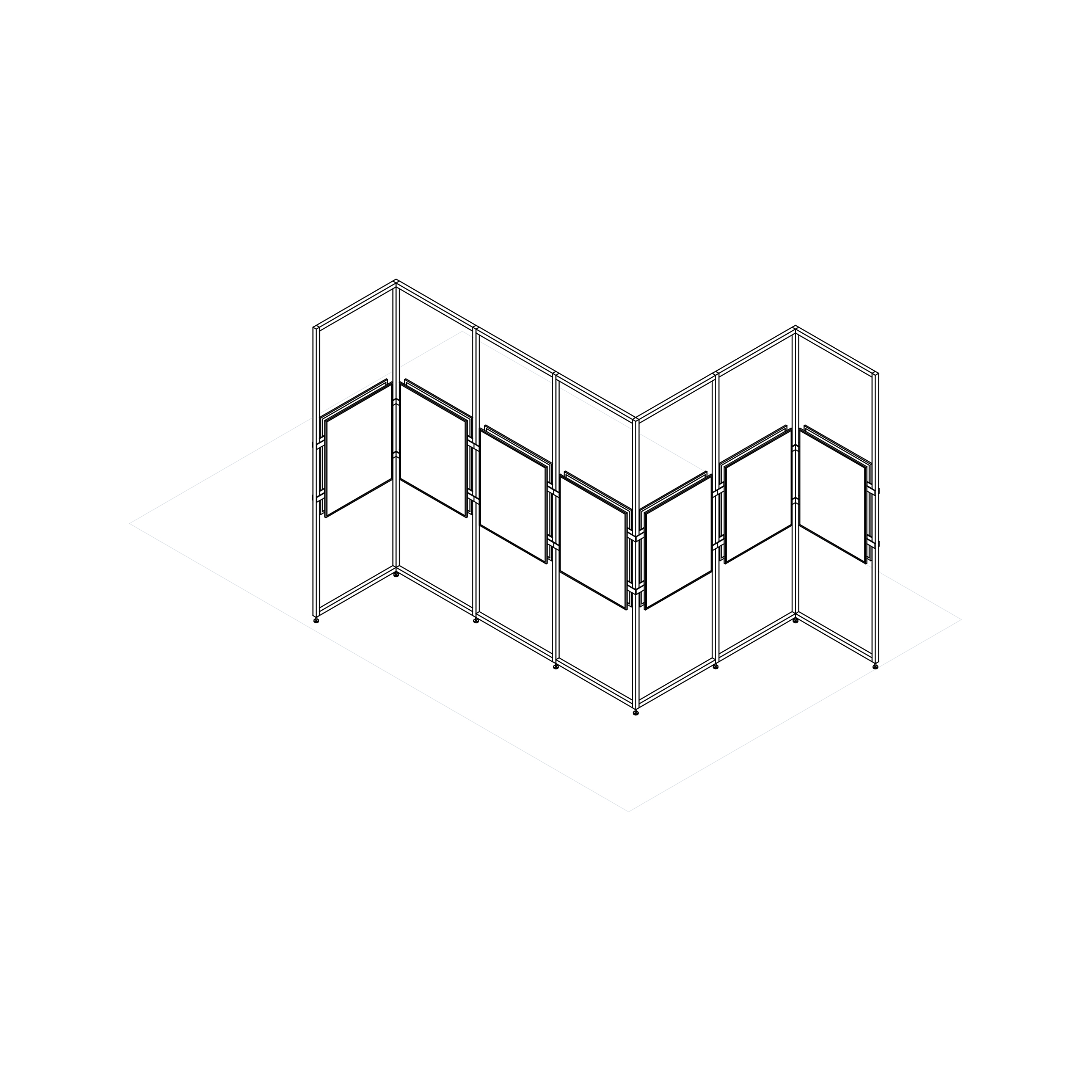Am propus astfel un sistem modular de cadre metalice, alcătuite din bare de aluminiu modulate la 1m, prinse cu eclise metalice și rigidizate de către panourile de expunere.